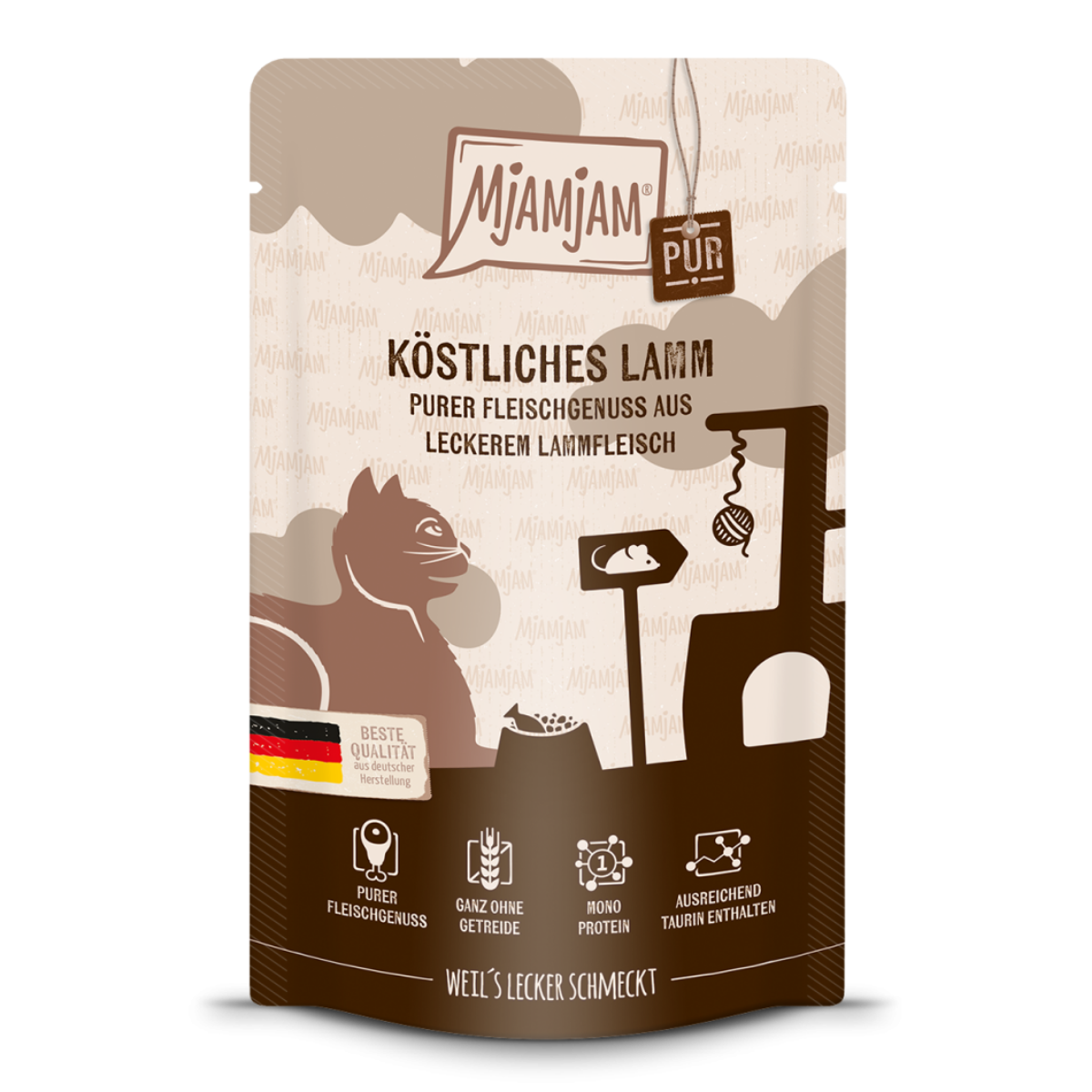 Ingredientes: Carne de cordero, hígado, corazón, riñones y callos (71%), caldo de carne (28%), minerales (0,5%), cáscaras de huevo (0,5%).
